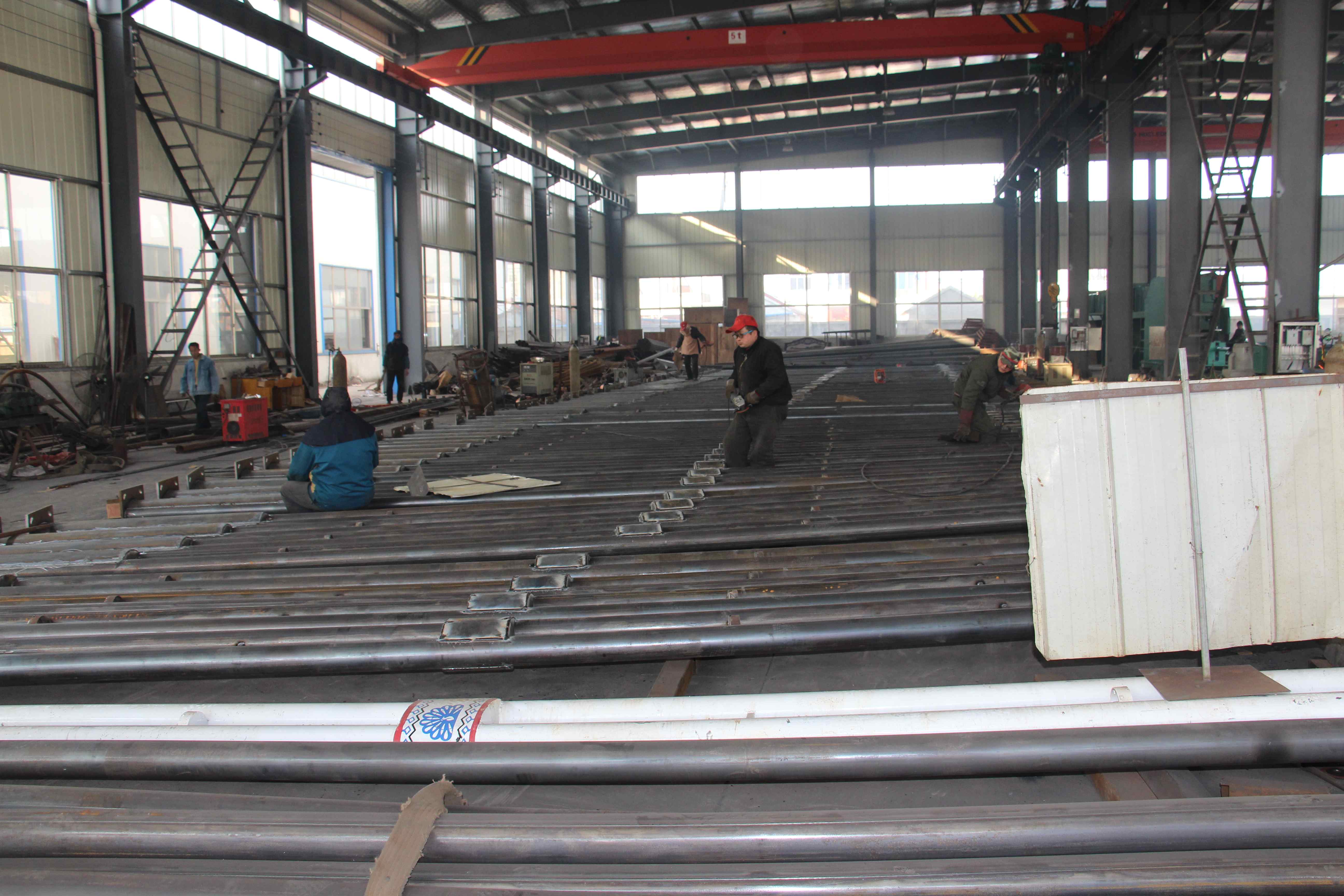 高郵市捷通交通器材有限公司位于揚州北郊送橋開發區。公司占面積20000平方米,建筑面積12000平方米。   二千年以來,以鋼代木和水泥桿已風行世界,我國各地也紛紛建立錐桿廠,以漂亮的錐桿代替了過去的和水泥桿,裝點了一條條的公路和街道,美化了環境,照亮了人間成為各地新建和改造道路的不可缺少的配套設施。路燈的千變萬化,已成為各地路燈生產商和建設者的追求。   但現有的路燈,均在燈頭及底座上變化;燈頭款式雖多,但在燈桿上均無變化,只有光身錐桿和光身直桿,十分單一。以我公司多年對管材深加工設備的認識,加上全公司員工的不懈努力,成功設計制造了花式錐桿的機械設備,生產出竹節、六花